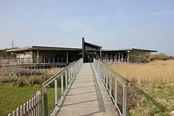 Newport Wetlands RSPB Reserve visitor centre as seen from picnic and play area