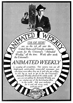 Trade advertisement for the Universal Animated Weekly, a newsreel series created by Universal Pictures in 1913