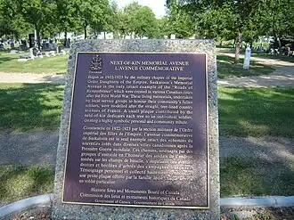 Official nameNext of Kin Memorial Avenue National Historic Site of Canada