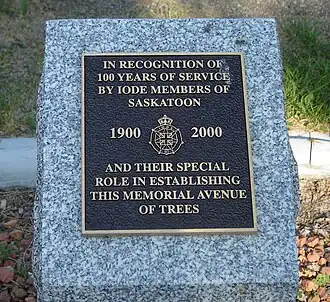 • In recognition of 100 years of service by IODE members of Saskatoon. 1900–2000. and their special role in establishing this memorial avenue of trees.