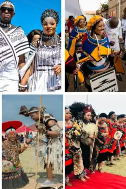Predecessors of Nguni people migrated from Central Africa into Southern Africa during the late Iron Age, with offshoots in neighboring colonially-created countries in Southern Africa.[1] Swazi (or Swati) people live in both South Africa and Eswatini, while Ndebele people live in both South Africa and Zimbabwe.