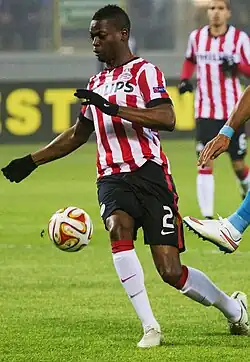 Isimat-Mirin playing for PSV Eindhoven in a UEFA Europa League match against Zenit Saint Petersburg in 2015.