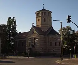 The residential area that arose after nearby Berlin had become the German capital is characterised by mansions and dwelling houses, developed primarily around the year 1910 on the former estates of Schönhausen Palace.[3] This short-lived municipality of the former Niederbarnim district merged into Berlin with the "Greater Berlin Act" in 1920.