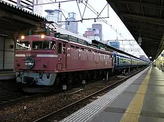 EF81 locomotive on a Nihonkai train at Ōsaka Station in September 2006