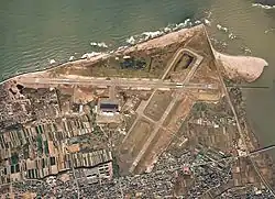 The first airport on the Sea of Japan coast of Japan was opened on an island in the Shinano River in 1929. This airport was moved to what was then the village of Matsugazakahama in 1930, and was renamed Niigata Airport. It was requisitioned for use by the Imperial Japanese Army Air Force in 1941, and came under the control of the USAAF after the end of World War II. It was returned to Japanese civilian control on March 31, 1958, on which date commercial flight operations were resumed. International services were started in 1973, with scheduled service to Khabarovsk and Niigata Airport became historically an important gateway for traffic to and from Russia, which among other purposes were used to export Niigata-area agricultural products to Russia; however, flights were reduced from winter 2010 as more slots became available for Russia service at Narita International Airport near Tokyo.[3]
