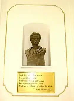 Bust of Nikolaus Lenau in the entrance hall of the Nikolaus Lenau High School