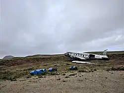 - On 29 May 1965, a Reeve Aleutian Airways Douglas C-47A (N91016),[5] during the take-off phase, stalled and crashed because a sudden wind gust caused a premature lift-off. The three crew members and the two passengers on board were not injured. The aircraft was damaged beyond repair and left by the side at the end of the airstrip ever since.[6]