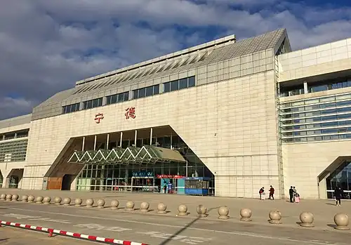 Ningde railway station (Chinese: 宁德站) is a railway station located in the Jiaocheng District of Ningde City, Fujian Province, China, on the Wenzhou–Fuzhou railway[1] operated by the Nanchang Railway Bureau, China Railway Corporation. It opened on 1 October 2009.[2] Ningde became a junction station with the opening of the Quzhou–Ningde railway on 27 September 2020.