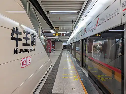 Niuwangmiao (Chinese: 牛王庙; pinyin: Niúwángmiào) is a station on Line 2 and Line 6 of the Chengdu Metro in China.[1]