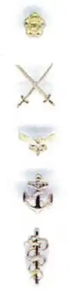 Bar button and insignia for the Army, Air Force, Navy and Military Health Service