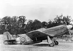In April 1945 the squadron, commanded by Squadron Leader C. T. P. Stephenson DFC, moved from Mill to Twenthe and commenced re-equipment with the Supermarine Spitfire FR.XIVE, a reconnaissance version of the Rolls-Royce Griffon engined variant of the Spitfire, which was used with the remaining Mustangs, at that stage some Mustang Mk.IAs and larger number of Mustang Mk.IIs. The squadron used these up to and after VE Day in May 1945; the squadron continued in the occupying Allied forces and moved to Celle in late May 1945.[6] In August 1945 the squadron retired the last of its Allison-engined Mustangs after forty months. In mid-September 1945 the squadron took on the specialist high-altitude reconnaissance Supermarine Spitfire PR.XIX, these aircraft being largely acquired by the transfer of a flight from 16 Squadron.
