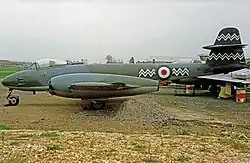 Gloster Meteor preserved wearing the postwar unit markings of No. 500 Squadron.