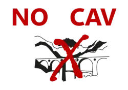 In 2014, the Tuscan regional council approved a plan for the "gradual closure of quarries",[110] promoted by regional councillor Anna Marson, and then withdrawn following pressure from Confindustria.[111] For the first time, the newspaper Il Tirreno used the word "No Cav" to define the activists who fought against the Apuan quarries.[6]
