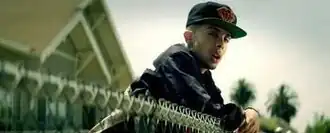 Dappy in the L.A. neighbourhood scene in the music video for "No Regrets".