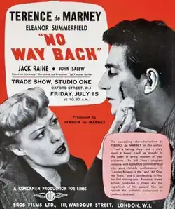 No Way Back is a 1949 British second feature ('B')[1] crime film directed by Stefan Osiecki and starring Terence De Marney, Eleanor Summerfield and Jack Raine.[2][3] It was written by Thomas Burke, Osiecki and De Marney, from a short story by Burke.