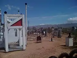 In 1989, Purifoy moved to a friend's trailer in the Mojave Desert, and over the last fifteen years of his life built what is now the Noah Purifoy Desert Art Museum.[8] Located on 10 acres (4.0 ha) of open land near the town of Joshua Tree, California, the museum contains over one hundred works of art, including large scale assemblages, environmental sculptures, and installation art created by the artist between 1989 and 2004.[9] While giving the appearance of a salvage yard with tires, bathroom fixtures, TVs, ragged clothes, toys and vacuum cleaners, each piece has a story to tell. One piece has a water fountain labeled “White” and a toilet labeled “Colored”.[10] The museum is open to the public and is maintained and preserved by the Noah Purifoy Foundation, established in 1998.[5]