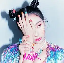 "Noir" (Korean누아르; RRNuareu) is a song recorded by South Korean singer Sunmi. It was released on March 4, 2019, through Makeus, as a single. The track was written by Sunmi and produced by her and El Capitxn. "Noir" is a dance-pop and EDM track about "inevitable end of a relationship" similar to a noir film narrative. An official music video for the song was released in conjunction with the single on March 4, 2019. The video shows the singer as a clout-chasing influencer who fakes her lifestyle to make it look great on-screen in the hopes of getting followers and likes, even if it's dangerous.