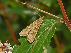 5. ^ a b c "Rush Veneer Nomophila noctuella". UK Moths. Retrieved 2017-07-26.