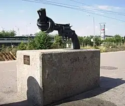 11. ^ Anna Harstedt, Celebrating the iconic Knotted Gun sculpture at the United Nations in NYC, 30 years later Archived 2019-04-08 at the Wayback Machine, Metro.us, 4 October 2018
