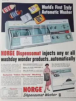 Norge was a brand of appliances was originally manufactured by the Norge Appliance Company. It was once a division of BorgWarner and later a division of Fedders. The Norge name was acquired in 1979 by Magic Chef, which in turn was absorbed by Maytag in 1986.[1] Since 2006, Maytag is a part of Whirlpool Corporation.