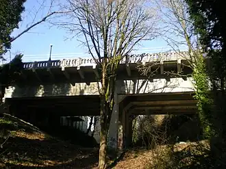 The North 21st Street Bridge in Tacoma, Washington was built in 1910. It was designed by engineers Waddell & Harrington and is a continuous concrete rigid-frame girder bridge. It is significant as one of the very earliest examples of its type. It was built "almost simultaneously" with the 950-foot (290 m) Asylum Avenue Aqueduct in Knoxville, Tennessee, which was documented by Carl W. Condit to be the first continuous concrete girder bridge to be built.[2]: 1–2