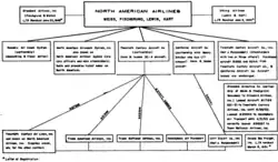 The group's complexity worked against it in settings like Congress. In one hearing, opponents republished a complex group organizational chart which North American Aviation prepared for its trademark suit against the group. The group's lawyer, testifying, objected to the chart as "childish", something "you would see in a psychiatrist's office" and "perfectly ridiculous", but then, only a moment or two later, conceded it was "essentially accurate."[84] Further, because the group re-used names, apparently simple questions had confusing answers. A member of Congress asked: "Is the North American Airlines a single corporation?" The answer was both yes (North American Airlines, Inc., the airline was a single corporation) and no (North American Airlines the Group was not).[85] Testimony got bogged down just trying to understand the organization. The CAB answered the question of why the group was so complex by saying that in part it was to evade and circumvent the Civil Aeronautics Act of 1938.[86] In other words, the law.