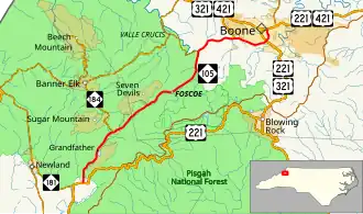 North Carolina Highway 105 (NC 105) is a primary state highway in the U.S. state of North Carolina. It traverses from the mountain community of Linville to the town of Boone.