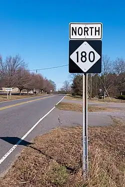 Established in 1952, as a mostly new primary route around Shelby, and has not changed since.[2] The first NC 180 was from 1932-1952, connecting the communities of Polkville to Fallston; it was renumbered as an extension of NC 182.[3][4]