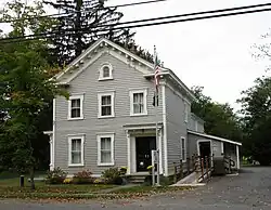 The North Chatham Free Library, at 4287 State Route 203,[4] is likely an important element of the community, but its not-very-historic building, constructed in 1958 and extended in 1995, caused it to be deemed a resource that is "non-contributing" to the historic character of the district. It is a one-story wood frame building with vinyl siding and a low gable roof. "A one-story addition was built at the west side of the building in 1995, its character and finishes in keeping with the original library building. There is a one-story wood entrance porch at the east entrance, a wood frame ramp for accessibility and a wood stair corresponding with the west entrance."[2]