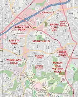 Following the incorporation of Brookhaven in 2012, the idea of incorporating a city of Briarcliff was proposed by a civic group known as the North Druid Hills Study Group.[11] Supporters cited more local control as reasons in favor of cityhood, while those against cityhood cited the lack of an identity, center, and boundaries as reasons against.[12][13] The city of Briarcliff boundaries would be:[14]
