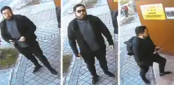 Once Hong had been admitted inside the building, the remaining members of the group allegedly burst in after him;[12] it is possible Hong let them in himself[20] as he waited on an interior patio[15] for the attaché to appear.[20][note 2] Ten masked individuals,[11][4] all but one of whom were below the age of 30,[17] were subsequently described as being Asian in appearance and speaking Korean.[4] They may have congregated on the open land outside the embassy, which would have attracted less attention than loitering near the front entrance, on a main road.[13] The group carried what appeared to be replica firearms,[11] metal bars, machetes and knives.[20] They also brought balaclavas, a 3.8-metre (12 ft) telescopic ladder[15] and 33 rolls of double-sided tape with them.[21]