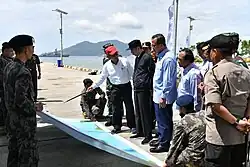 Both the Chinese and Indonesian governments often assert that there is no territorial dispute between them, a stance taken to foster and maintain positive bilateral relations between the two nations.[14][15][16] In 2014, Chinese Foreign Ministry Spokesperson Geng Shuang stated, “There is no territorial dispute between Indonesia and China.”[17] In 2015, Indonesian Minister of Foreign Affairs Retno Marsudi similarly asserted that "Indonesia does not have overlapping claims with any other countries" and that "no country has ever claimed the Natuna Islands."[18] Despite these statements, China's nine-dash line overlaps with Indonesia's EEZ in the North Natuna Sea. China's claim to Indonesian waters covers approximately 83,000 km², or 30 percent of Indonesia's sea area in Natuna.[19][20][21]