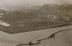 Local publishing mogul Merrill C. Meigs supported earlier recommendations for converting Northerly Island into an airport, but construction did not begin for numerous reasons, such as lack of funds during the Great Depression and WWII. Construction did not begin until after a competing proposal to host the United Nations Headquarters on the island was lost in 1946.[5] The Works Progress Administration connected the island to the mainland via a causeway at 12th Street in 1938. During this period Northerly Island was full of paths and walkways as well as a beach at 12th Street.