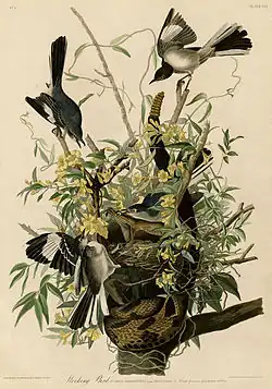 The northern mockingbird is the state bird of Arkansas,[67] Florida,[68] Mississippi,[69] Tennessee,[70] and Texas,[71] and previously the state bird of South Carolina.[72]