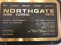 Northgate High School opened in 1974 to relieve pressure on neighboring Ygnacio Valley High School in Concord. Students were gradually phased in; the school graduated its first class in 1976. Northgate was the last high school to be built in the Mt. Diablo Unified School District.