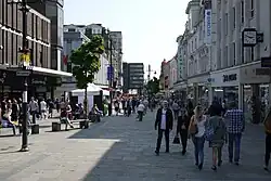 Northumberland Street is a major shopping street in the city of Newcastle upon Tyne, in the North East of England. It is home to a wide range of different retailers, banks and cafes. As of 2004, Northumberland Street was the most expensive location in the UK outside London to own a shop, in terms of rental per square foot.[1] However, by 2016, it had been overtaken by Manchester's Market Square, Leeds' Commercial Road, Edinburgh's Princes Street, and Glasgow's Buchanan Street.[2] There are currently over 51 retailers including pubs on Newcastle's Northumberland Street.