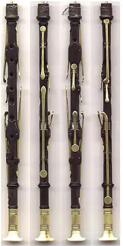 A detailed account of the construction of Northumbrian smallpipes written by William Alfred Cocks and Jim F. Bryan[5] was published in 1967 by the Northumbrian Pipers' Society; it was very influential in promoting a revival of pipemaking from that time. This is now out of print, however. Another description, by Mike Nelson, is currently available. Nelson's designs also include the "School Pipes", G-sets with plastic components, made to be used in schools in Northumberland.[6] These two accounts differ rather in their objectives, as Cocks and Bryan was based on descriptions of existing sets, notably by Robert Reid, Nelson being a description of his own design.