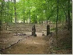 The Council Ring hosts the start and finish of the weekly camp program during summer camp, with a campfire. It was originally constructed in 1941 as part of an OA Ordeal.It was extended in 2007 to prepare for the 2008 SR-6S Conclave that took place at Camp Sidney Dew.