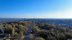The top of the ridge is above 100 metres for a distance of well over 2 kilometres, becoming a transmission site for telecommunications in the South East.[2][20] Television poineer John Logie Baird moved his workshops to under the main transept of the Crystal Palace, with the transmitter on its south water tower. The workshops were destroyed by fire along with the Palace in 1936, but his studio survived and he continued transmissions until WWII, during which the tower was demolished to prevent the Luftwaffe using it as a landmark.[21] In 1955, the Croydon transmitting station, originally a lattice tower formation, was built at Beaulieu Heights, by South Norwood Hill. A few months later, the 219-metre Crystal Palace transmitting station was completed for the BBC on the former site of The Aquarium on Crystal Palace Parade. The Croydon transmitter was replaced by the current 152-metre tower in 1962, originally used for ITA transmissions. Both towers are now owned and operated by Arqiva.[22][23][24]