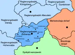 • Zichenau (region) or Regierungsbezirk Zichenau of the Nazi German Province of East Prussia in 1939–45