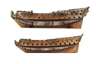 ![]() Above, a wooden ship model of a contemporaneous 70-gun British third-rate ship of the line, similar to the Vitória.