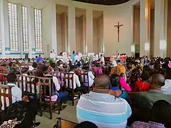 Notre-Dame de la Sagesse (meaning "Our Lady of Wisdom"), contracted as NODASA, is a Roman Catholic parish church located on the University of Kinshasa's campus in the Lemba commune, Democratic Republic of the Congo.[1][2][3] Operating under the auspices of the Doyenné Notre Dame de la Sagesse, it provides pastoral ministries to professors and students associated with the University of Kinshasa and Institut Supérieur des Techniques Médicales (ISTM-Kinshasa).[3] It is the mother church for approximately 46,000 Catholics, including 34,000 students, 8,000 teachers, and their families.[3] NODASA fosters symbiotic interfaith relations with adherents of Protestantism, Kimbanguism, Islam, and those embracing esoteric disciplines.[3]