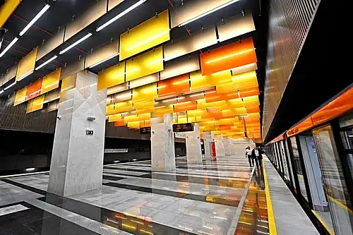 Novatorskaya (Russian: Новаторская) is a metro station on Bolshaya Koltsevaya line of the Moscow Metro, between Prospekt Vernadskogo and Vorontsovskaya. The name of the station derives from Novatorov Street as it is located at the interchange between Leninsky Avenue and Novatorov Street. The station was opened on 7 December 2021 as part of the section between Mnyovniki and Kakhovskaya.[1]