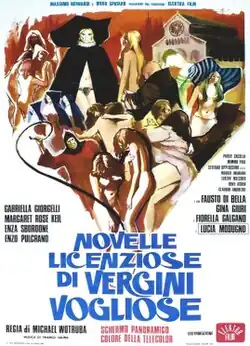 Italian: Novelle licenziose di vergini vogliose, lit. 'Licentious Tales of Lusty Virgins', is a 1973 Italian decamerotic comedy film lensed and directed for the most part by Joe D'Amato. The story and screenplay were written by D'Amato and producer Diego Spataro.[2]