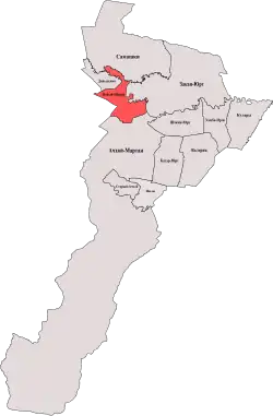 Map of Achkhoy-Martanovsky District with Novy Sharoy highlighted