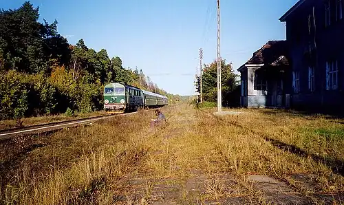 After 1989, the economic system change led to a significant reduction in coal transport, making Nowa Wieś Wielka–Gdynia Port railway no longer necessary for handling excess traffic. On 30 August 1990, the last scheduled fast train on the Gdynia–Wrocław route passed through Kościerzyna.[40] From 1991, the line was used exclusively for limited freight transport to Gdynia and on the Chojnice–Bydgoszcz route. Additionally, trains carrying oversized cargo appeared occasionally. Local passenger traffic remained largely unchanged.[39]