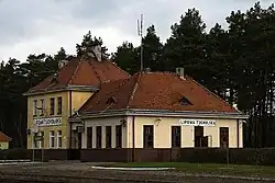 The second section was the connection between Bąk and Kościerzyna. This line was opened on 15 October 1928, although it became operational on 1 November 1926.[3] The line served two purposes: on one hand, it allowed the transport of construction materials, and on the other, it shortened the route between Tczew and Kościerzyna, as it did not require a detour to the border station of Chojnice. This section used embankments of an unfinished line connecting Czersk with Gdańsk,[16] and in the future, it was to be part of a trunk-line connecting Gdańsk with Poznań.[17] The section from Czersk to Bąk was to be an entry point to the trunk-line heading north from Chojnice (Germany) and Tczew (East Prussia).[18]