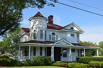 Nowell-Mayerburg-Oliver House is a historic home located at Selma, Johnston County, North Carolina. It was built about 1912, and is a two-story, 2 1/2-bay, square, Queen Anne style frame dwelling. It features gabled projecting bays, a three-story octagonal stair tower, second story Palladian window, and a wrap-around porch with elegant Ionic order columns. Also on the property are the contributing garage and a small bungalow style summer house.[2]