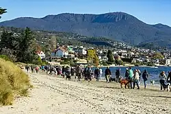 ![]() Nutgrove Beach looking toward Sandy Bay homes and Mount Wellington | |