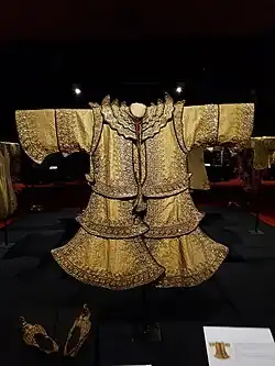 The museum also stores and maintains a large collection of 138 costumes belonging to various Saophas, ministers and myosa governors of the area. In 2016, the museum considered sending them to France for restoration, but eventually decided to maintain and restore them within the country in partnership with the National Museum in Yangon.[5] In June 2019, 30 of the costumes were show in a rare exhibit at the National Museum before being returned to the Nyaungshwe Cultural Museum. The collection includes several pieces using materials sourced from faraway locations like England and the conservation process took 15 months.[6]